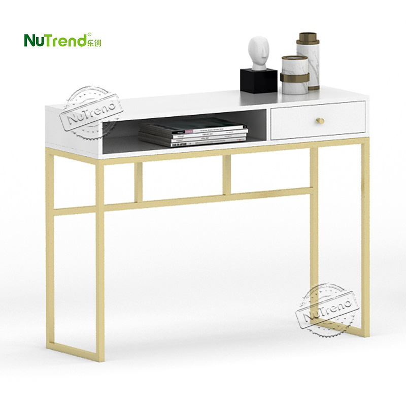 203546 طاولة كونسول حديثة باللونين الأبيض والذهبي مع درج للردهة